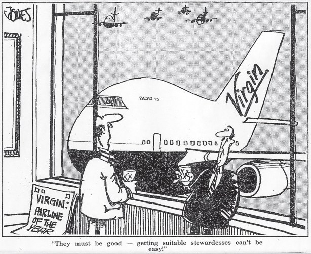 Сите напнато гледаа напред и го задржуваа здивот. Сигурно мислеа дека е ова некаков самоубиствен лет што го организираше лудакот Бренсон. Тоа беше смртоносен молк. Тогаш авионот почна да се крева, а пистата исчезнуваше од видикот. Индиецот посегна зад увото, извади џоинт и му понуди и на копилотот. Пред сите да бидат сосема сигурни дека е шега, авионот полета, а двајцата пилоти ги извадија капите и се свртеа со лицата накај камерата – тоа беа Ијан Ботам и Вив Ричардс. Авиоинженерот со брада сум јас. „Мора да се добри – да се најде соодветна стјуардеса е тешка работа!“ Сите во авионот букавлно паднаа од смеа. Го снимивме полетувањето во симулатор претходниот ден.